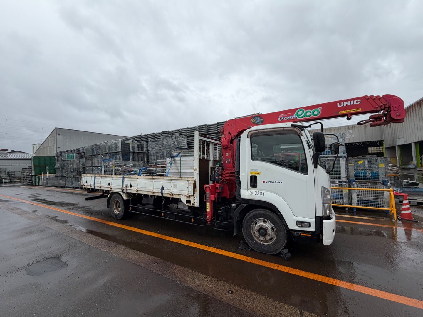 天気が悪いですが、安全運転で現場まで運んで行きます。