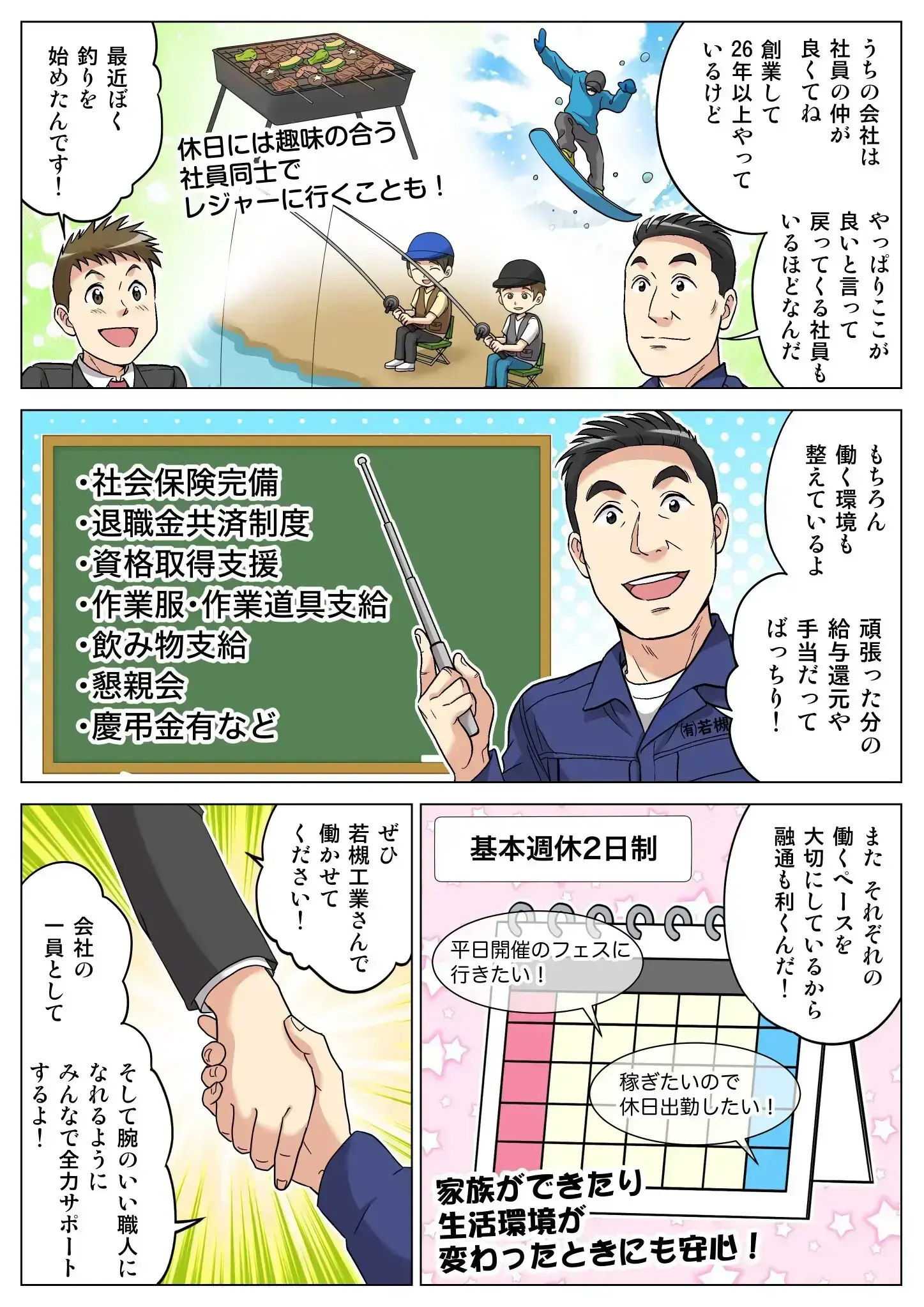 新潟県新潟市の有限会社若槻工業では、未経験者でも一流の鳶工職人を目指せるよう、先輩職人たちがしっかりサポートします。